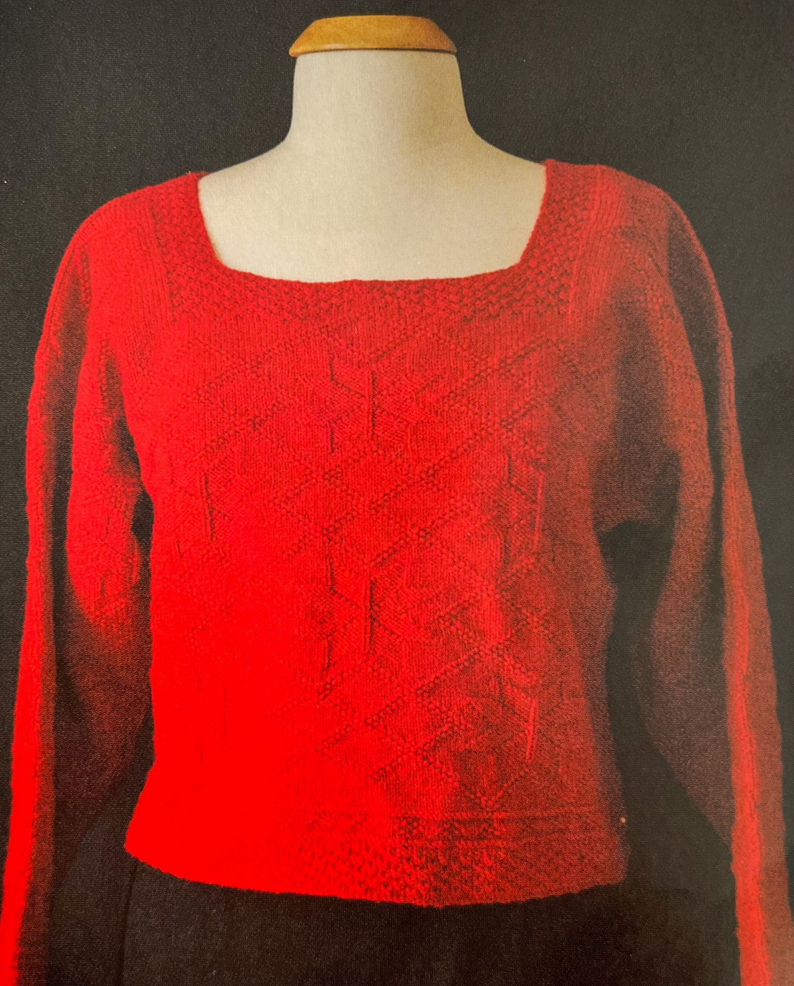 Her strikket både menn, kvinner og barn. De kardet og spant ull fra egne sauer, og for å forsterke garnet ble både hunde- og menneskehår blandet inn. Plaggene til hjemmebruk var praktiske og enkle: ensfargede strømper, votter, gensere og undertøy. Pagoldh skriver om dette i Nordic Knitting, mens McGregor legger til en detalj jeg elsker: Kvinners underskjørt kunne være så tykke og tunge at de sto av seg selv når du satte dem rett ned – og til vinterbruk ble de ofte farget røde.